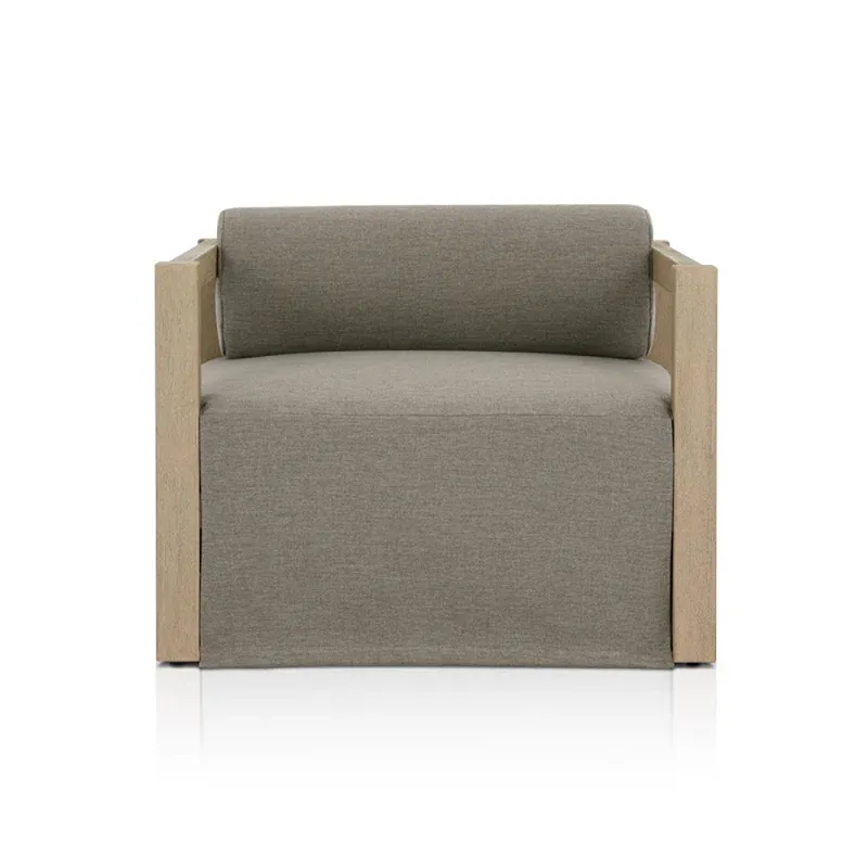 Além disso, o design da cadeira foca na segurança do usuário, com bordas arredondadas para eliminar cantos afiados e reduzir o risco de possíveis ferimentos por colisão durante o uso. Este design amigável permite que toda a família a use com tranquilidade, sem se preocupar com ferimentos acidentais. Para levar o conforto ao próximo nível, projetamos cada cadeira de pátio com almofadas de pelúcia dedicadas que não são apenas resistentes às intempéries, mas também macias ao toque, garantindo que você desfrute de um conforto incomparável enquanto relaxa ao ar livre. Projetada com longos períodos sentados em mente, esta almofada é ricamente acolchoada e oferece suporte, transformando seu espaço ao ar livre em um verdadeiro refúgio de relaxamento. O tecido da almofada do assento complementa a rica textura da madeira da cadeira de madeira. A combinação dos dois não apenas aumenta o charme visual da almofada do assento, mas também aprimora o senso geral de design. Tecidos macios encontram a textura áspera da madeira para criar uma aparência sofisticada e equilibrada que, sem dúvida, aumentará a beleza e o conforto de qualquer área externa.