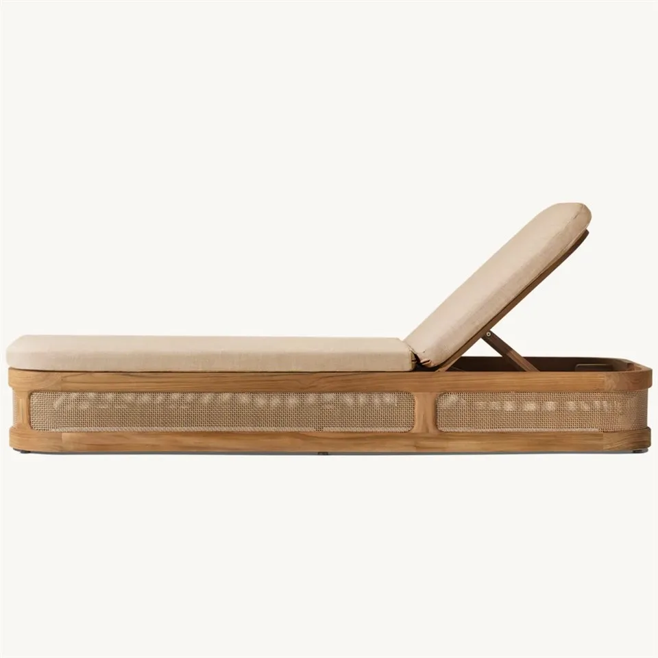 Nossa moderna chaise longue de vime adota um design de base redonda para evitar que objetos estranhos se acumulem sob a cama, ao mesmo tempo em que fornece espaço de armazenamento adicional. A base pode ser aberta para ajustar o encosto, permitindo que você armazene algumas necessidades diárias, aumentando a praticidade e a funcionalidade da cama. Este design não apenas melhora a conveniência de uso, mas também torna esta cama mais atenciosa e prática.