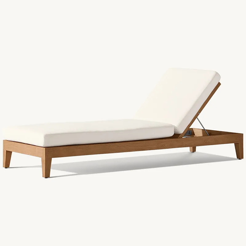 A madeira de teca é altamente aclamada por sua durabilidade excepcional e resistência natural ao clima, tornando-a o material ideal para móveis de exterior. Os óleos naturais da madeira de teca não apenas repelem a umidade e previnem a deterioração, mas também afastam insetos, garantindo que sua chaise longue permaneça robusta e bonita em todas as estações. Com o tempo, a teca amadurece para desenvolver uma deslumbrante pátina cinza-prateada que adiciona um toque de sofisticação e charme à sua aparência sem sacrificar sua integridade.