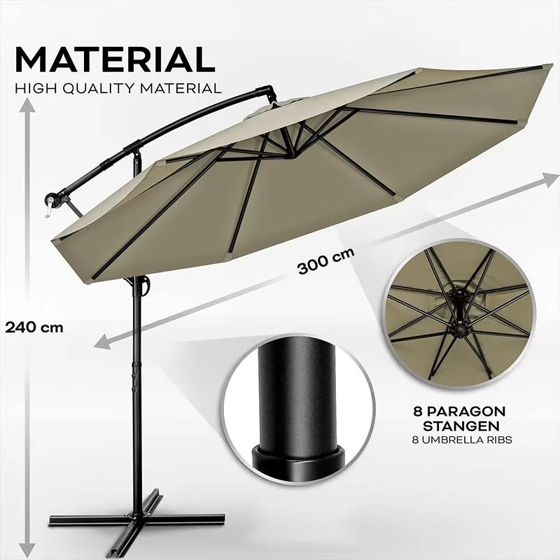 É perfeito para todos os tipos de ambientes - quer você esteja enfeitando seu terraço, jardim, hotel ou local de praia. Com uma estrutura de aço resistente e um poste de aço sólido de 48 mm, ele permanece firme mesmo quando o tempo fica selvagem, permitindo que você relaxe ao ar livre sem problemas.