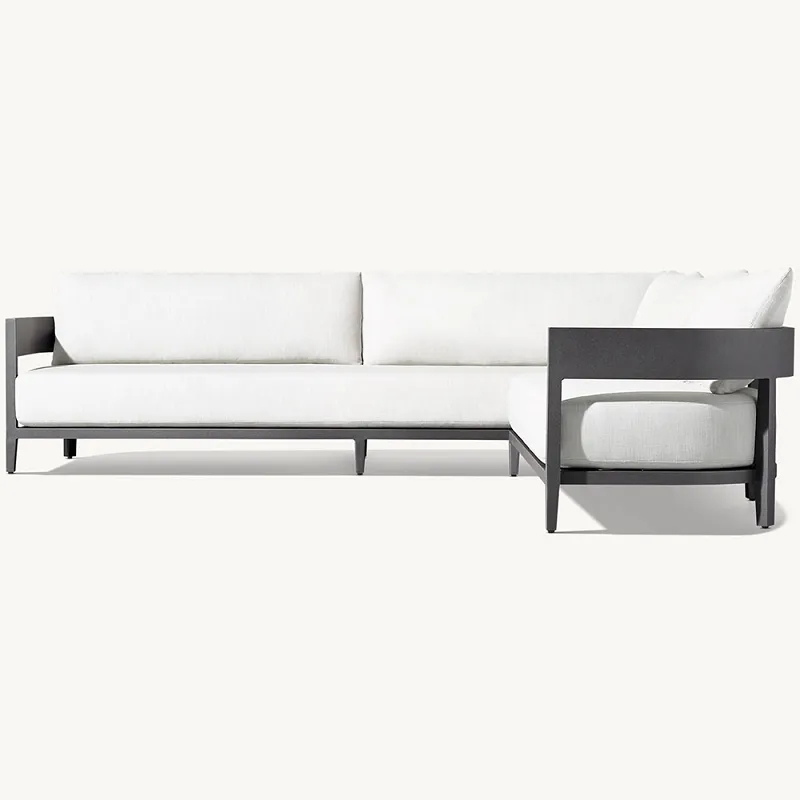 Este sofá de canto de alumínio para áreas externas oferece conforto durante todo o dia. O alumínio é um metal leve e resistente com uma excelente relação resistência/peso e resistência à corrosão - tornando-o um material ideal para móveis de área externa. Nossos sofás de alumínio são feitos de materiais de liga de alumínio não tóxicos de alta qualidade e foram rigorosamente inspecionados para garantir que atendam aos padrões ambientais, não contenham substâncias nocivas e sejam seguros e não tóxicos. Ao mesmo tempo, a liga de alumínio tem excelente durabilidade e pode suportar o teste do ambiente externo e manter uma longa vida útil. O sofá de canto de alumínio para áreas externas não é apenas único em aparência e conforto, mas também é muito conveniente na manutenção. Suas propriedades antidesbotamento, antiflacidez e antirachaduras não apenas estendem a vida útil do produto, mas também reduzem seus custos de manutenção e carga de trabalho. As almofadas do assento do sofá são feitas de material de espuma de secagem rápida, que tem excelentes propriedades de drenagem e características de secagem rápida. Quer você encontre uma chuva repentina ou um sol escaldante, a almofada do assento pode eliminar rapidamente a umidade e mantê-lo seco e confortável, proporcionando uma experiência de conforto duradoura. Oferecemos um serviço profissional de personalização, adaptando sofás de pátio ao seu estilo individual e às suas necessidades de espaço com base nas necessidades e preferências dos nossos clientes. Seja tamanho, estilo, cor ou tecido, podemos fornecer a você uma variedade de opções para garantir que seu sofá combine perfeitamente com o ambiente externo e crie um espaço de lazer externo exclusivo para você.