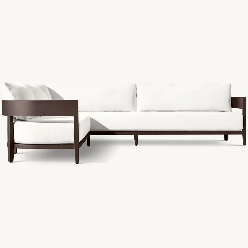 Nosso sofá de pátio em formato de U é construído em uma estrutura de alumínio forte e leve que oferece durabilidade superior e resistência aos elementos. O alumínio, conhecido por suas qualidades à prova de ferrugem, garante que seus móveis de exterior permaneçam bonitos e funcionais, não importa o clima. A estrutura é finalizada com um revestimento em pó que aumenta sua durabilidade e adiciona uma aparência elegante e moderna à estética geral do sofá.